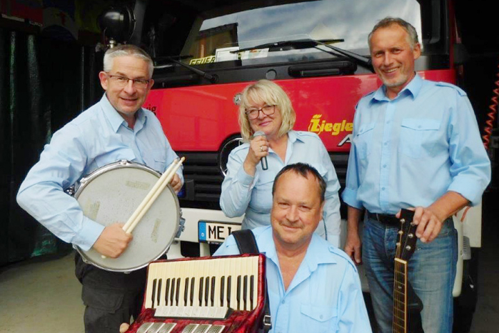 weiterlesenMatthias Rötzsch mit der Gitarre und Mathias Schäch mit dem Akkordeon. Später kamen dann der Dirk Landrock mit Schlagzeug und die Kerstin Rötzsch mit Gesang zur Band. Während Matthias das Gitarrenspiel in seiner Jugendzeit erlernte, brachten sich Dirk und Mathias das Spielen der Instrumente selbst bei. Unser Repertoire besteht hauptsächlich aus Stimmungs -und Volksmusik. Wir spielen gern für Senioren und im privaten Rahmen, aber auch bei Veranstaltungen innerhalb unseres Feuerwehrvereins. Wir musizieren selbstlos und freuen uns, wenn wir andere Menschen mit unserer Musik ein wenig Freude bringen können.