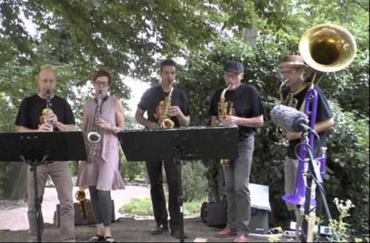 weiterlesenDas ursprüngliche Duo (Saxophon und Posaune) erweiterte sich sukzessive auf jetzt 6 Musiker, alles Hobbyisten. Vorwiegend spielen wir an jüdische und südosteuropäische Volksmusik angelehnte Lieder, aber auch alte Swing-Standards und einige alte Schlager.