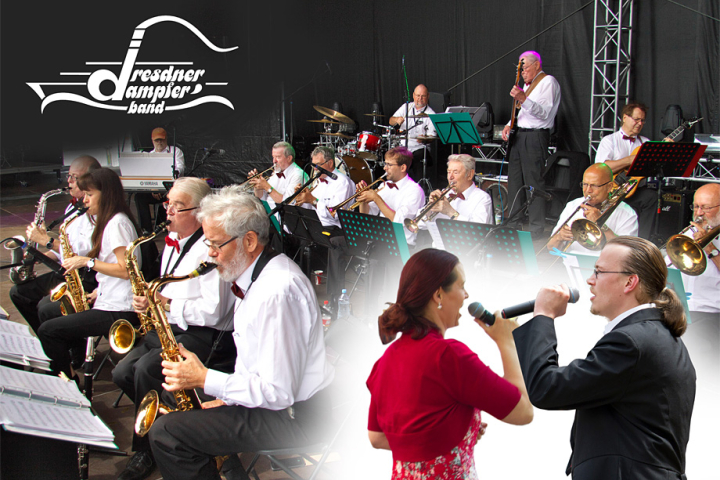 Vor der Bigband stehen nun bei einigen Titeln die Gesangsolisten Beatrice Wehner und Martin Schindler. Ihre Interpretationen von Swing – Standards, aber auch von deutschen Schlagern aus alten Zeiten, lassen beim Publikum nostalgische Stimmung aufkommen…
